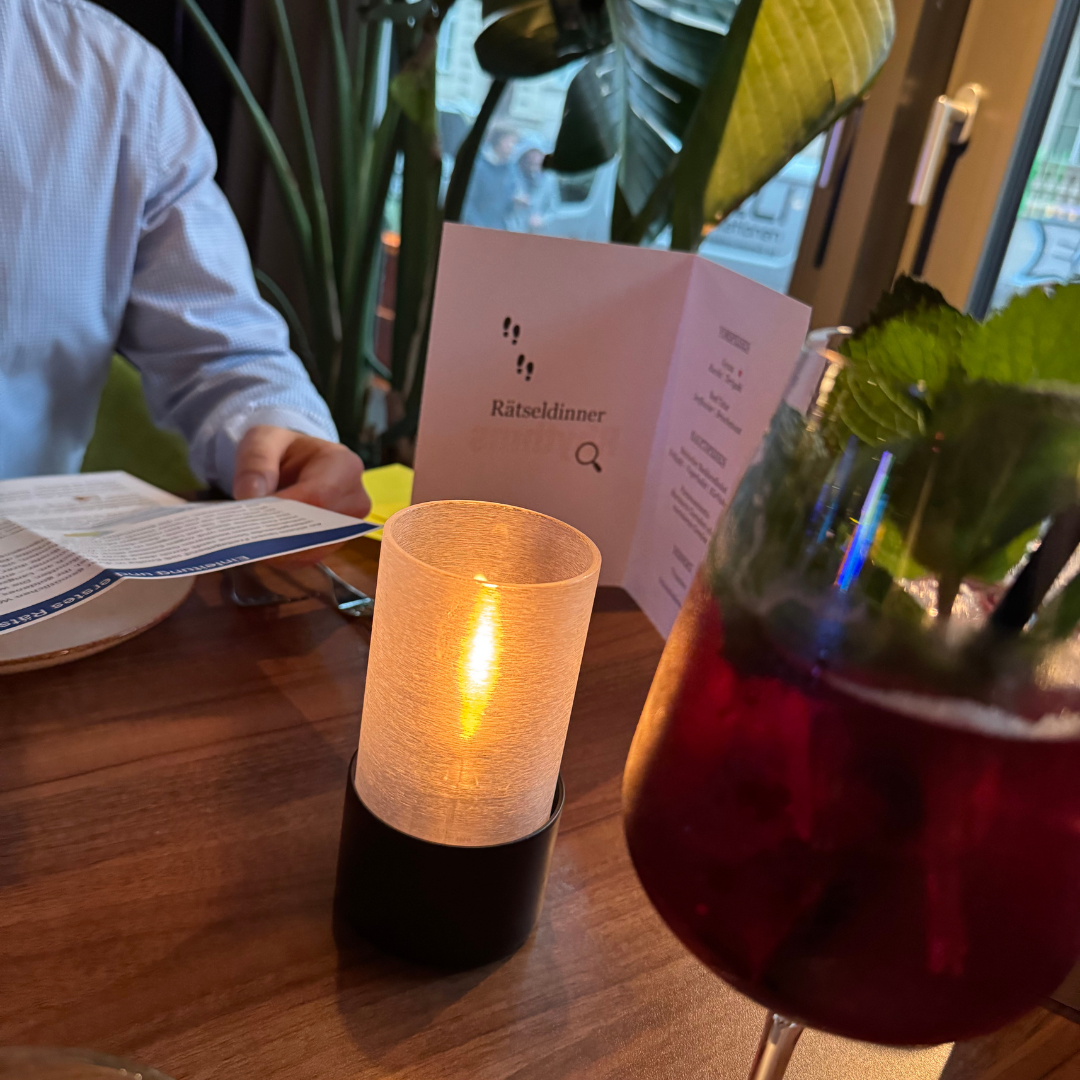 Genieße einen wunderschönen Abend voller Rätselspaß und kulinarischem Hochgenuss.